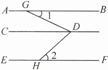 7. (聊城茌平区期末)如图,$AB// CD$,$∠GDH=∠1+∠2$.求证:$AB// EF$.