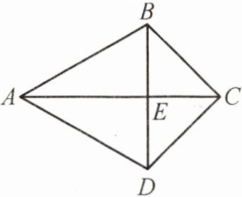 11. 如图,已知 $ \triangle ABC $,按如下步骤作图:①以 $ A $ 为圆心,$ AB $ 长为半径画弧;②以 $ C $ 为圆心,$ CB $ 长为半径画弧,两弧相交于点 $ D $;③连接 $ BD $,与 $ AC $ 交于点 $ E $,连接 $ AD $,$ CD $。