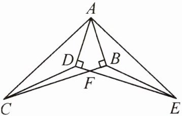 12. 如图,已知$Rt\triangle ABC\congRt\triangle ADE$,$\angle ABC=\angle ADE = 90^{\circ}$,$BC$与$DE$相交于点$F$,连接$CD$,$EB$。