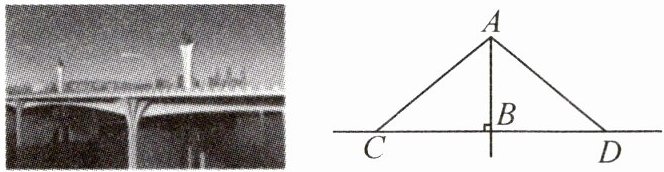 9. 某桥梁的侧面示意图如图所示,其中$AB\perp CD$,现添加以下条件,仍不能判定$\triangle ABC\cong\triangle ABD$的是(