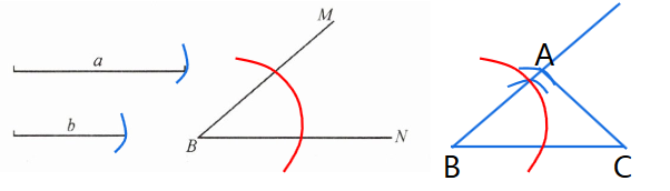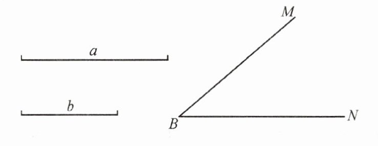 2. 如图,已知线段a,b和∠MBN,求作△ABC,使BC=a,AB=b,∠ABC=∠MBN(不写作法,只保留作图痕迹).