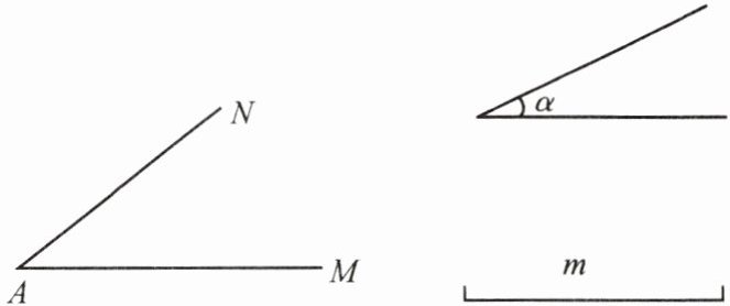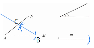 4. 如图,已知线段m和∠α,求作:在∠MAN上作△ABC,使点B在AM上,点C在AN上,且AB=m,∠ABC=∠α.(保留作图痕迹,不写作法)
