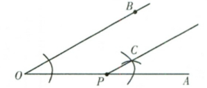 1. 如图,已知∠AOB,点P在OA上,请以P为顶点,PA为一边作∠APC=∠O.(不写作法,但必须保留作图痕迹)