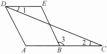 6.证明:因为AD//BE,所以∠A=∠3.因为∠1=∠2,所以DE//AC.所以∠E=∠3.所以∠A=∠E.