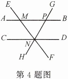 4. (滨州中考)如图,$AB// CD$,直线$EF$与$AB$,$CD$分别交于点$M$,$N$,过点$N$的直线$GH$与$AB$交于点$P$,则下列结论错误的是(
