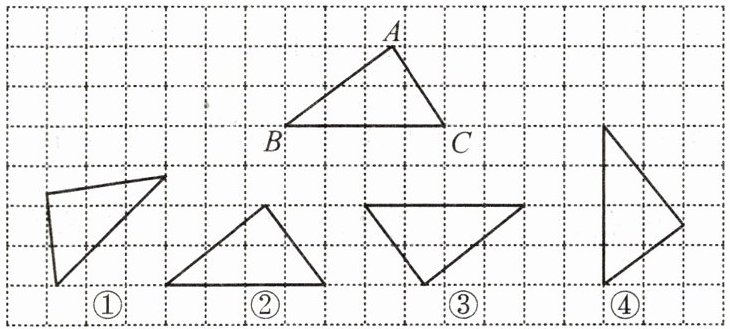 4. (呼和浩特中考)图中序号①②③④对应四个三角形,都是$\triangle ABC$这个图形进行了一次变换之后得到的,其中是通过轴对称得到的是(