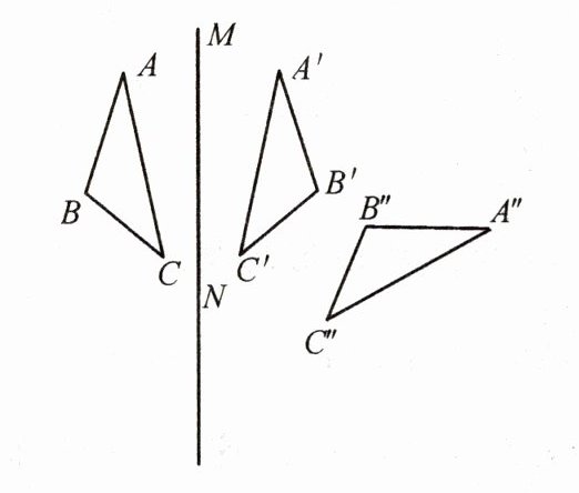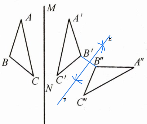 13. 如图所示,△ABC和△A′B′C′关于直线MN对称,△A′B′C′和△A″B″C″关于直线EF对称.
