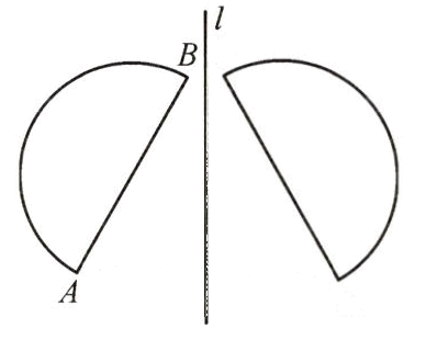 11. 如图所示,直线l是一个图案的对称轴,已经给出了这个图案的一半(半圆形),请画出图案的另一半.