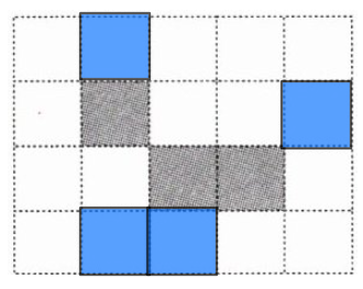 7.如图,在$4×5$的方格纸中,在涂阴影之外的方格中任意选择一个涂黑,与图中阴影部分构成轴对称图形的涂法有几种?请在下图中画出.