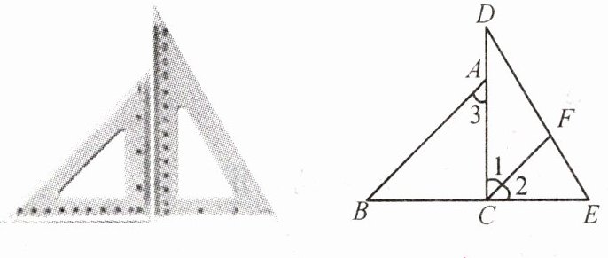 15. (12 分)将一副三角板拼成如图所示的图形,过点 $ C $ 作 $ CF $ 平分 $ \angle DCE $ 交 $ DE $ 于点 $ F $.