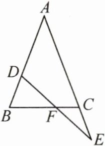 1.证明:过点D作DM//AC交BC于点M.所以∠DMB=∠ACB,∠FDM=∠E.因为AB=AC,所以∠B=∠ACB.所以∠B=∠DMB.所以BD=MD.因为BD=CE,所以MD=CE.在△DMF和△ECF中,$\begin{cases} ∠MDF=∠E \\ ∠MFD=∠CFE \\ MD=CE \end{cases}$所以△DMF≌△ECF(AAS).所以DF=EF.
