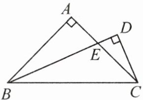 2.证明:延长BA,CD相交于点Q.因为∠CAQ=∠BDQ=90°,所以∠ACQ+∠Q=90°,∠ABE+∠Q=90°.所以∠ACQ=∠ABE.在△ABE和△ACQ中,$\begin{cases} ∠ABE=∠ACQ \\ AB=AC \\ ∠BAE=∠CAQ \end{cases}$所以△ABE≌△ACQ(ASA).所以BE=CQ.因为∠BAE=∠CAQ,BD平分∠ABC,∠BDC=∠BDQ=90°,所以∠Q=∠BCQ.所以BQ=BC.又因为BD⊥CQ,所以CD=DQ.所以BE=CQ=2CD.