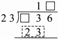 16. 右图是一道除法竖式计算的一部分,根据计算过程可知,被除数最大为( ),虚线框中的数表示23个( )。