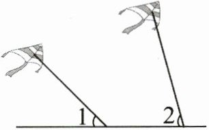 (1)量一量:下面两个风筝的线与地面所成的两个角的度数。(2分)