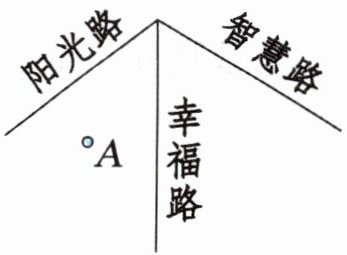 4. 下面是某市的局部交通线路图。该市准备修一条新的道路,该道路在幸福路左侧过点$A$且与阳光路平行,在幸福路右侧与智慧路平行。你能画出这条道路的线路图吗?