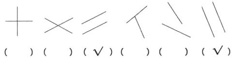 1. 下面每组中的两条直线,互相平行的在下面的括号里画“√”。