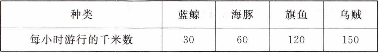 2. 蓝鲸、海豚、旗鱼和乌贼四种海洋生物平均每小时游行的千米数如表所示。