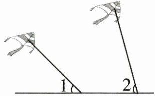 (1)量一量:下面两个风筝的线与地面所成的两个角的度数。