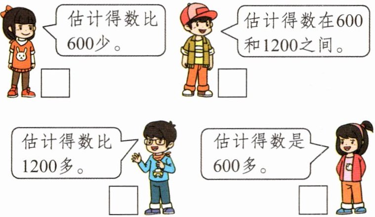 3. 素养题 张老师为 36 位同学购买奖品,每位同学用 24 元,照这样计算,大约需要多少元?谁的估算方法对?在□里画“√”。