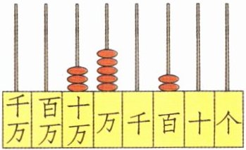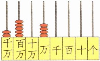 个 0 就组成五十万零八。(2)将 5 写在十万位上比写在十位上多