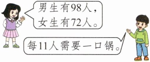 5. 希望小学四年级举行野营活动,请你替他们算一算,一共需要多少口锅?