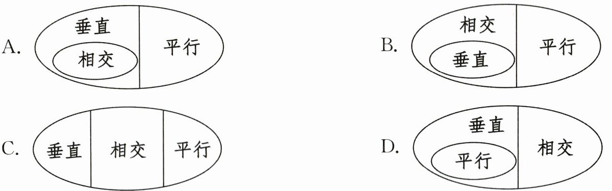 4. 下面图形中,能正确表示出平行、垂直和相交的关系的是( )