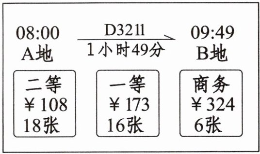3. 公司组织12名员工去B地参加技术培训,查询到的车票信息如图,他们坐这一趟列车,购买车票至少需要多少钱?