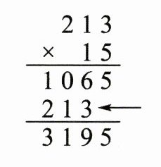 8. 向阳小学新购进15套桌椅,每套213元,购买这些桌椅花了多少元?下图算式中箭头所指的这一步表示的是( )