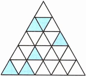 7. 如图,一个等边三角形被分成了若干个同样的小等边三角形。有些小三角形已被涂蓝,那么最少再涂蓝几个小三角形就可以构成轴对称图形?