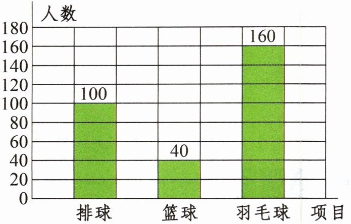 解:由统计图可知,喜欢羽毛球运动的人数是$160$人,喜欢排球运动的人数是$100$人。