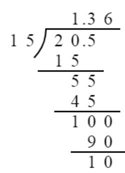 $20.5÷15=1.3\dot{6}$