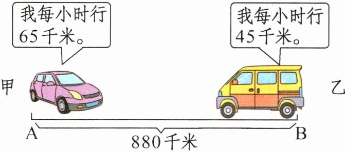 6. 甲、乙两辆车同时从A、B两地相向开出,经过几小时两车相遇?