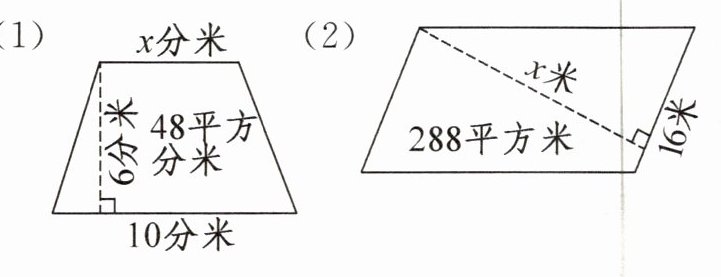 (1)$(x+10)× 6÷ 2=48$ $x=6$