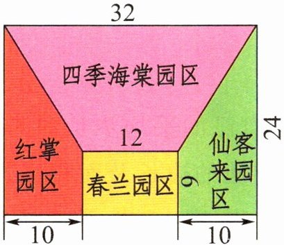 (3)答案不唯一,如:红掌园区的面积是多少?$(9+24)× 10÷ 2=165$(平方米)