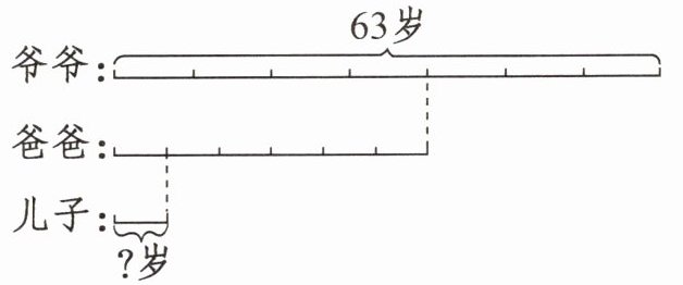 $63× \frac{4}{7}× \frac{1}{6}=6$(岁)