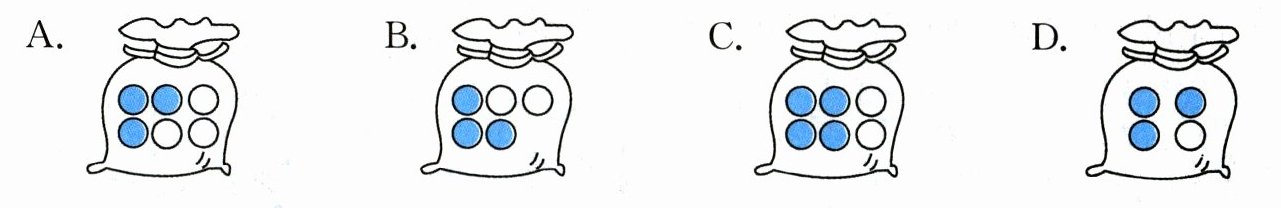2. 在下面( )袋中任意摸一个球,摸到蓝球的可能性最大。