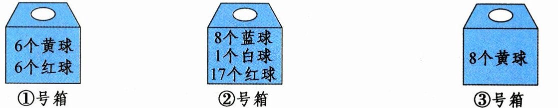 小红、小华和小玉分别从下面三个不同的箱子里摸出一个球。