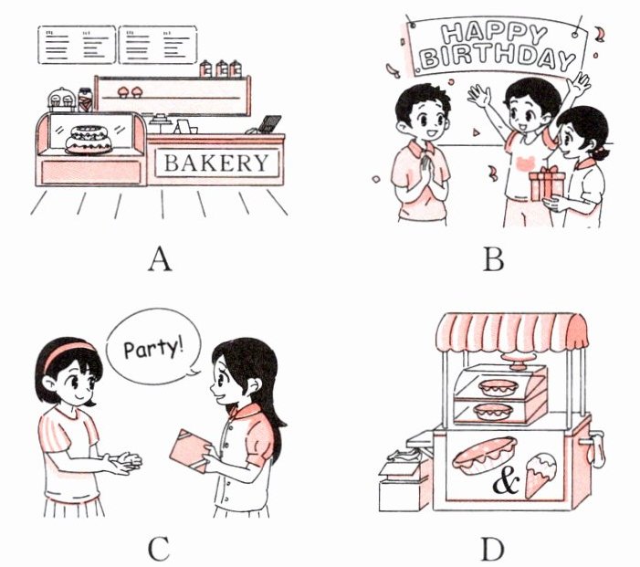 四、选择与对话相符合的场景图片。