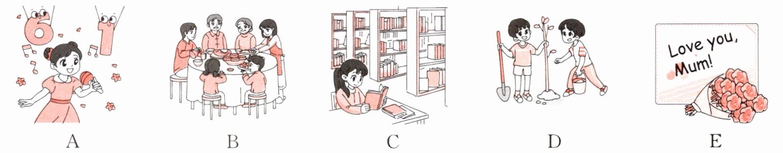 1. first; celebrate 2. March is the third month of the year; plant; Tree Planting Day 3. April; 示例:read books with their friends 4. It's in May