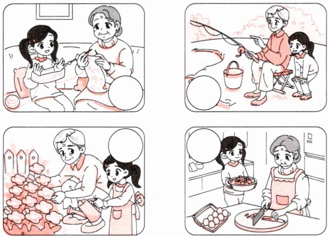 五、【生活实际】Lily周末去看望爷爷奶奶。读一读她的朋友圈内容,完成下列题目。