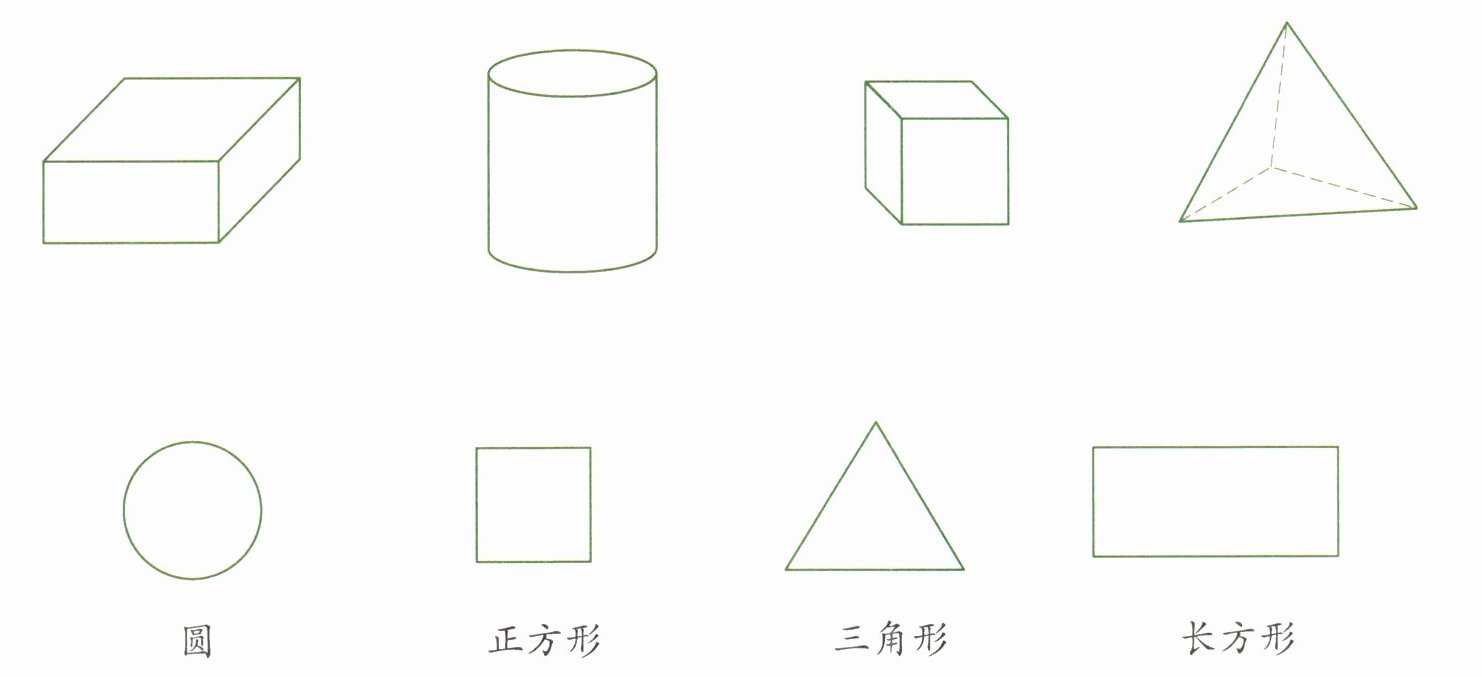 1. 下面这些积木可以描出哪些图形?用线连一连。