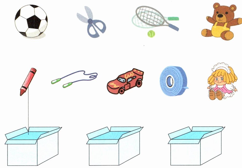 3. 整理物品。同一类物品放在一个箱子里。