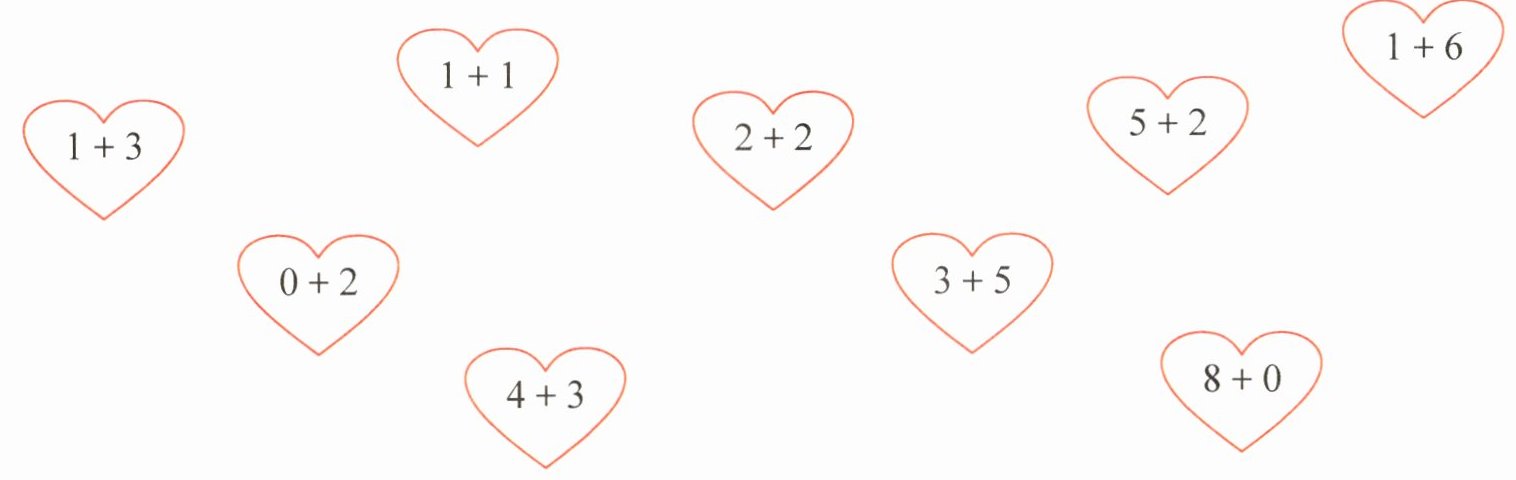 将$1 + 3$与$2 + 2$相连,$1 + 1$与$0 + 2$相连,$5 + 2$、$1 + 6$与$4 + 3$相连,$3 + 5$与$8 + 0$相连。