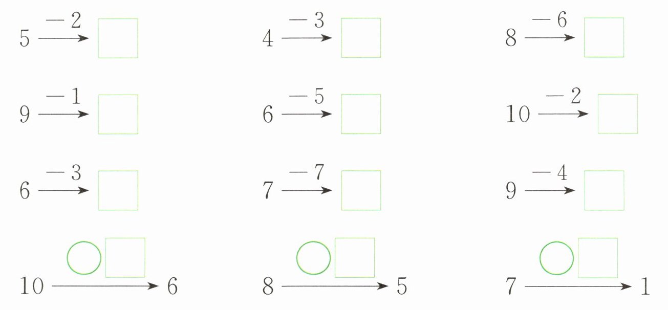 5. 在空格处填上数,使横行、竖列上3个数相加都得10。
