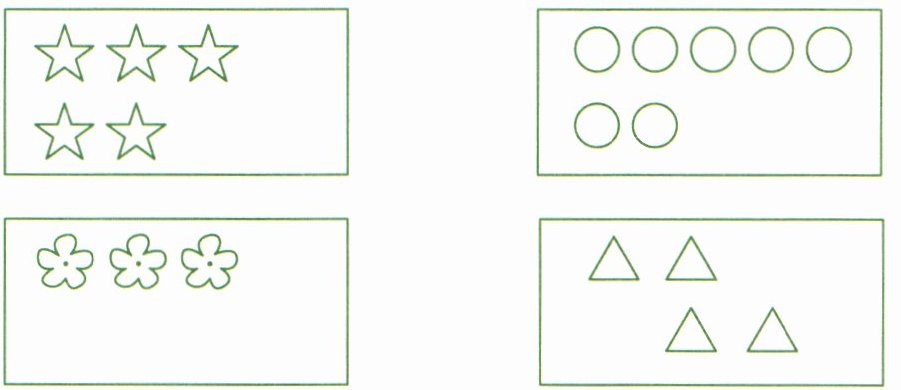 答案即:在第一方框中画 5 个☆;在第二方框中画 3 个○;在第三方框中画 7 个❀;在第四方框中画 5 个△。