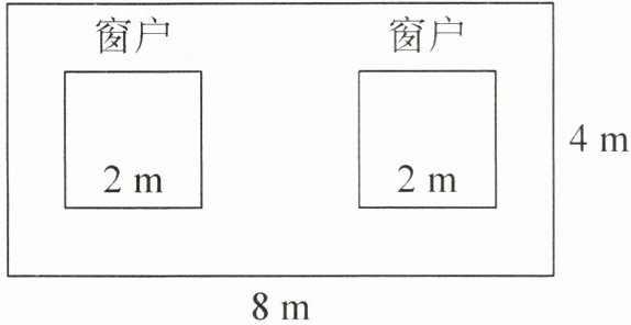 (5)长方形墙上有$2$个正方形的窗户,如果要刷这面墙,粉刷的面积是多少平方米?