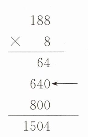 一盒润喉糖 8 元,学校买了 188 盒,右边竖式计算中的箭头所指的这一步的结果表示( )。
