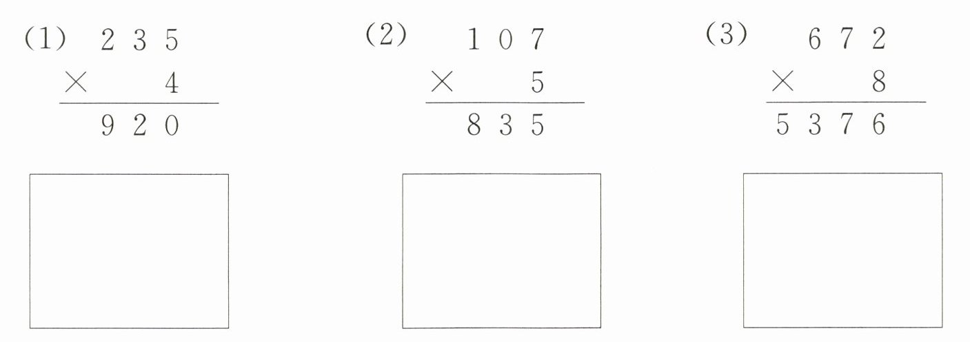 $\end{array} (2)\begin{array}{r}107 \\×\ \ \ 5 \\\hline835\end{array} $