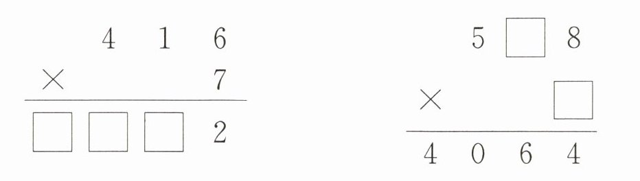 $\begin{array}{r}5\ □\ 8 \\×\ \ \ \ \ \ □ \\\hline4\ 0\ 6\ 4\end{array} $