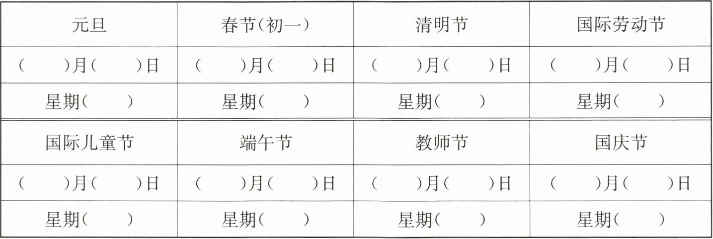 (2) 某年 9 月份有 4 个星期三,5 个星期二,这年的 9 月 30 日是( )。